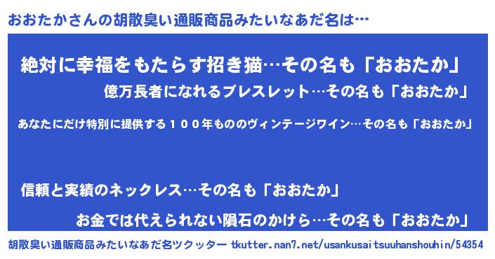 | 意味不明あだ名 | 『住所不定無職おおたか(12歳)』 |
