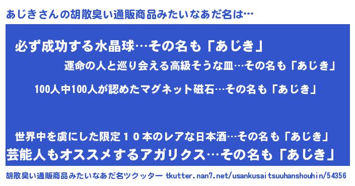 | 意味不明あだ名 | 『眠気覚ましガムあじき味』『自称あじき』 |