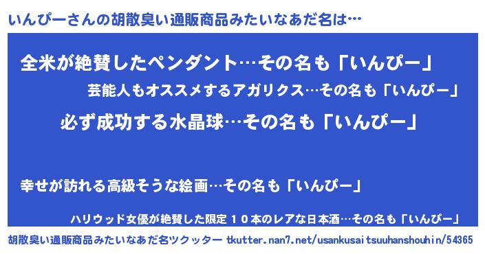 | 意味不明あだ名 | 『ペロリンいんぴー』『自称いんぴー』 |