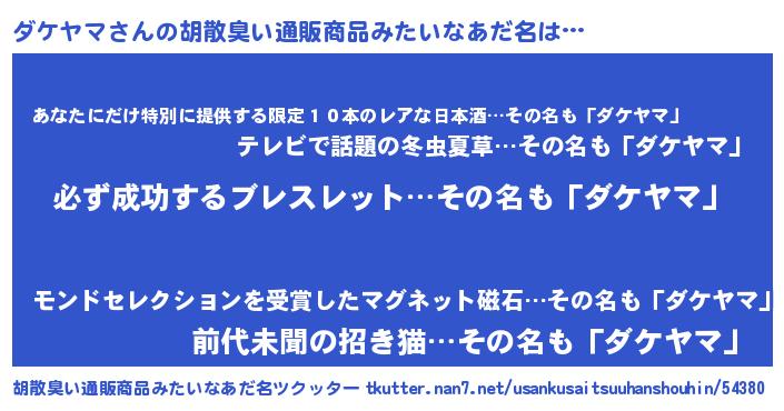 | 意味不明あだ名 | 『ペロリンダケヤマ』『永久保存ダケヤマ』 |