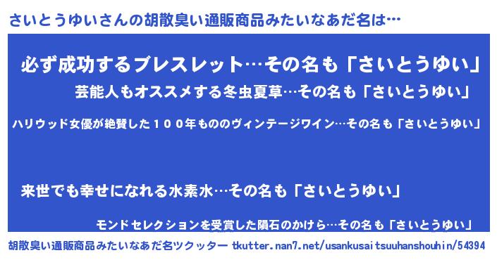| ヘコむあだ名 | 『さいふぇ~』『さいとうゆい(小並感)』 |