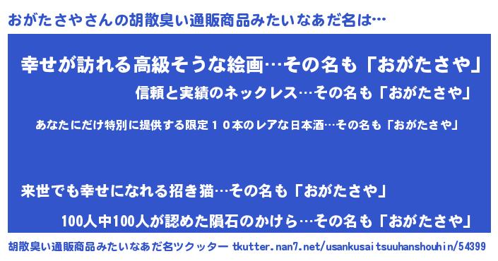| 意味不明あだ名 | 『住所不定無職おがたさや(40歳)』 |