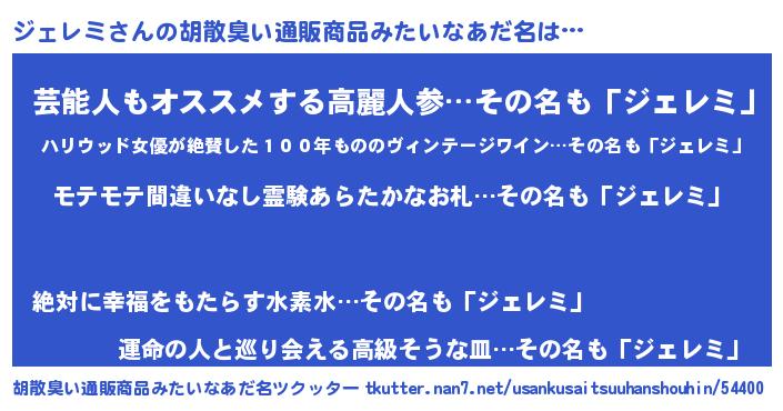 | 意味不明あだ名 | 『ペロリンジェレミ』『自称ジェレミ』 |