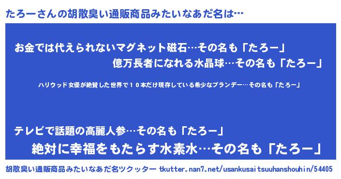 | 意味不明あだ名 | 『住所不定無職たろー(86歳)』『自称たろー』 |