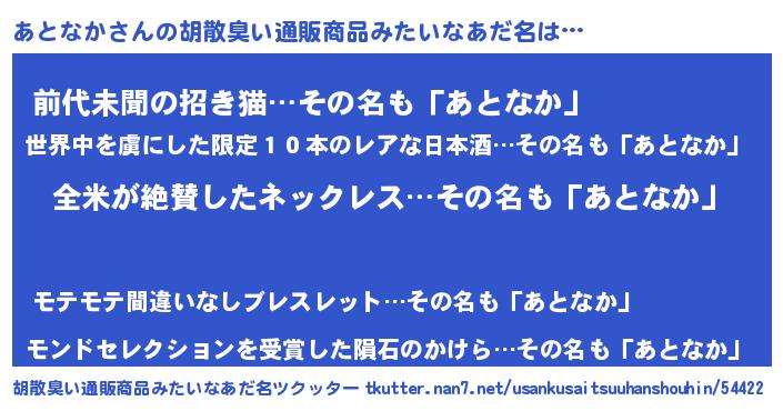 | 欧米人風あだ名 | 『アンジェラ・あとなか』 |