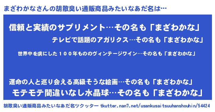 | 欧米人風あだ名 | 『ダレノガレまざわかな』 |