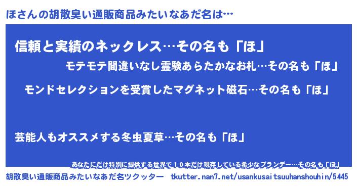 | ヒーロー風カッコイイあだ名 | 『天空の使者ほ』『黄金騎士ホ』 |