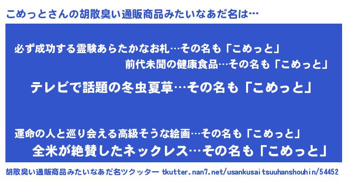 | ファンタジー風あだ名 | 『ゼコメトゥ』『コメフェル』 |