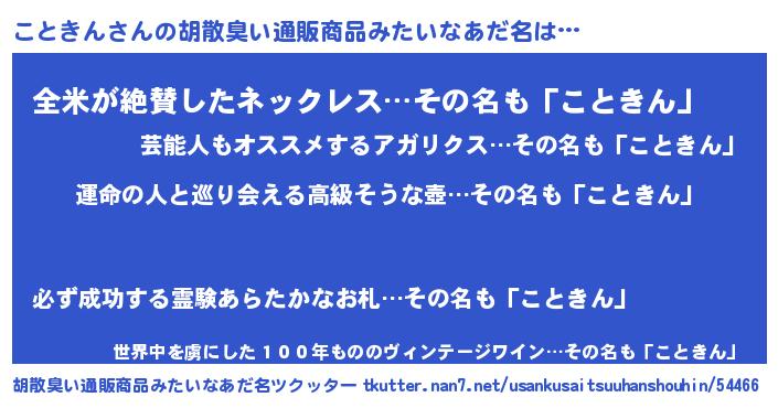 | 意味不明あだ名 | 『こときんフォーエバー』『自称こときん』 |