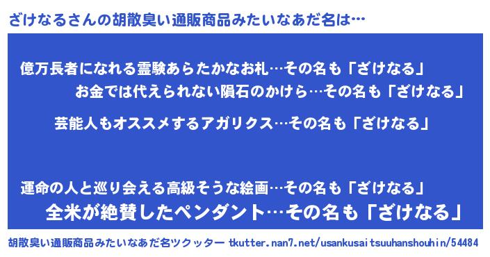| ヒーロー風カッコイイあだ名 | 『究極戦士ザケナル』『スーパーザケナル』 |