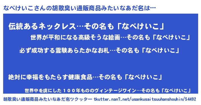 なべけいこさんの胡散臭い通販商品みたいなあだ名をツクッター!