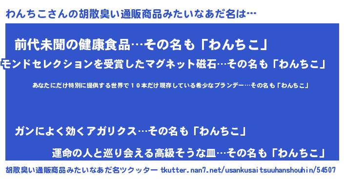 | 意味不明あだ名 | 『住所不定無職わんちこ(98歳)』 |