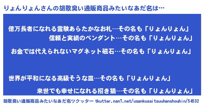 | ヒーロー風カッコイイあだ名 | 『慈愛の使者りょんりょん』 |