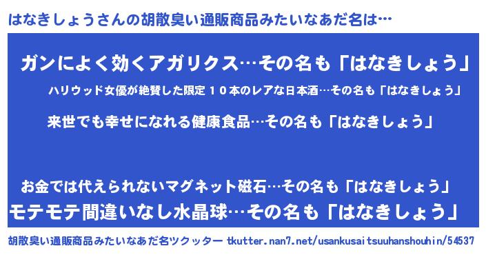 | ヘコむあだ名 | 『はなきしょう(笑)』『はなふぇ~』 |