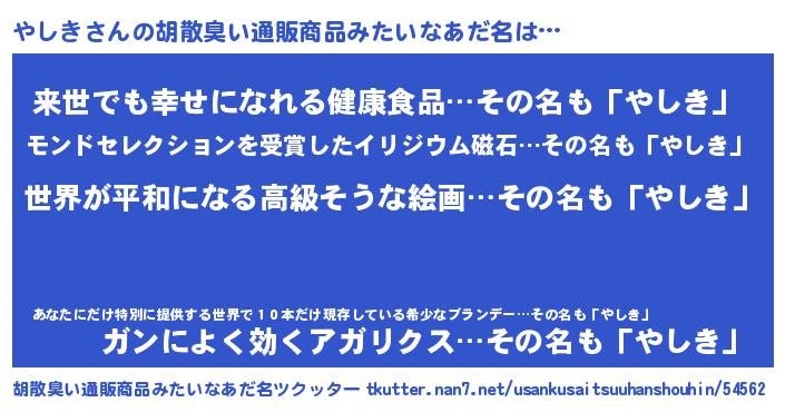| ヘコむあだ名 | 『豆乳』『やしき(遠い目)』 |