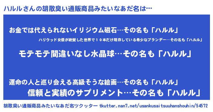 | ヒーロー風カッコイイあだ名 | 『スーパーハルル』『愛の使者ハルル』 |