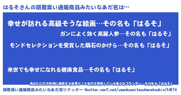 | 意味不明あだ名 | 『眠気覚ましガムはるそ味』『自称はるそ』 |