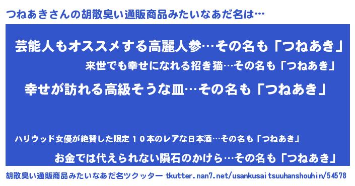 | 肩書あだ名 | 『つねあき国家主席』『つねあき船長』 |
