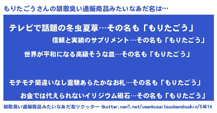 | 意味不明あだ名 | 『もりたごうフォーエバー』 |