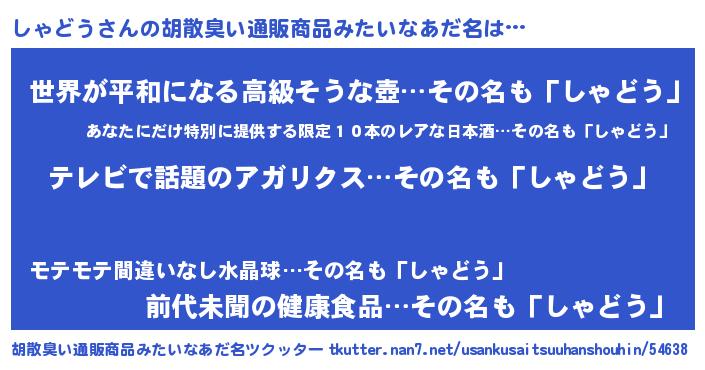 | ヘコむあだ名 | 『なまこ酢』『しゃどう(笑)』 |
