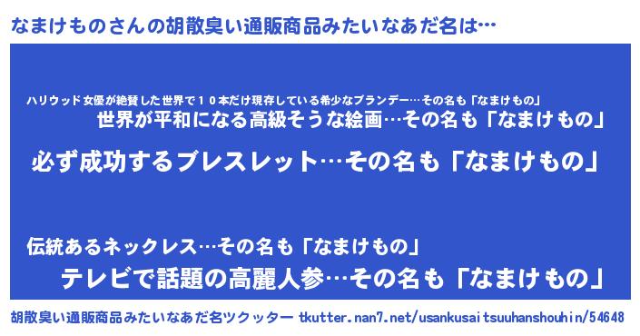 | 2回繰り返すあだ名 | 『なまなま』『すごすご』『まごまご』 |