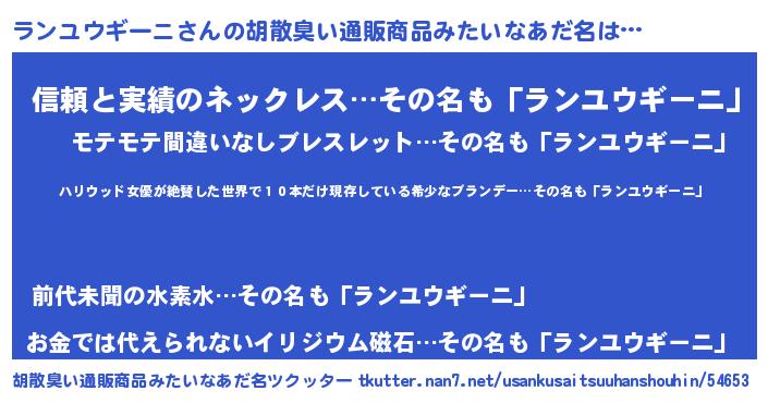 | ヘコむあだ名 | 『ランっちょ』『ランにゅー』『豆乳』 |