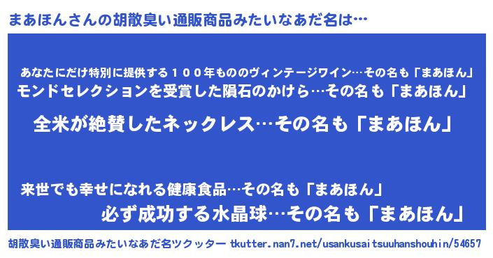 | 意味不明あだ名 | 『ヨモギ科まあほん属』 |