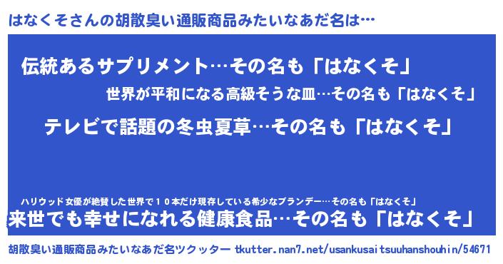 | 意味不明あだ名 | 『自称はなくそ』『永久保存はなくそ』 |