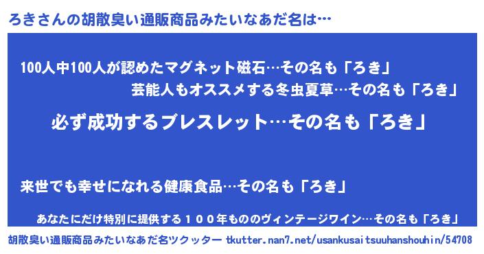 | ヘコむあだ名 | 『ろきにー』『ろき(小並感)』 |