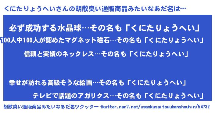 | 意味不明あだ名 | 『とにかく怪しいくにたりょうへい』 |