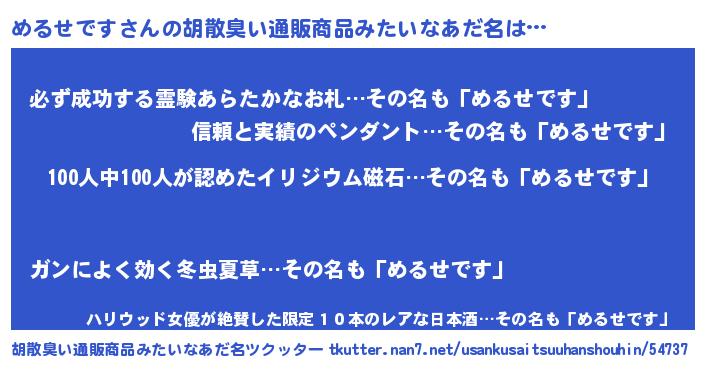 | ヒーロー風カッコイイあだ名 | 『正義の使者めるせです』『仮面メルダー』 |