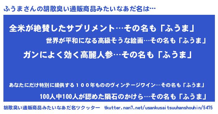 | 意味不明あだ名 | 『自称ふうま』『とにかく怪しいふうま』 |