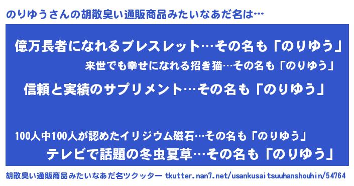 | 意味不明あだ名 | 『とにかく怪しいのりゆう』 |