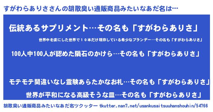 | 意味不明あだ名 | 『眠気覚ましガムすがわらありさ味』 |