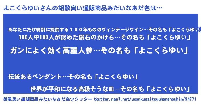 | 肩書あだ名 | 『よこくらゆい閣下』『よこくらゆい船長』 |