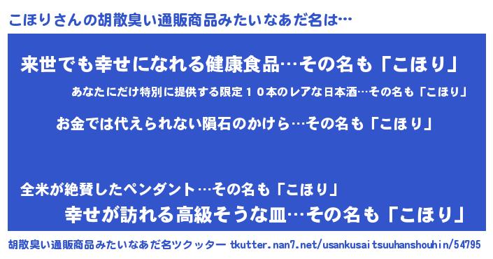| ヒーロー風カッコイイあだ名 | 『友情の使者こほり』『ネオコホリ』 |