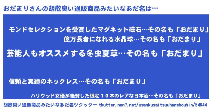 | 意味不明あだ名 | 『自称おだまり』『ペロリンおだまり』 |