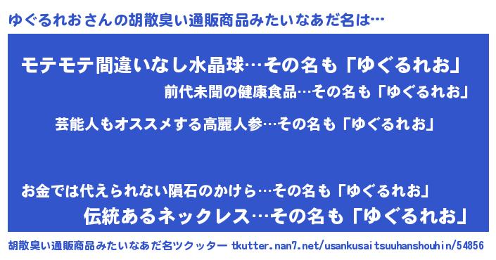 | 意味不明あだ名 | 『自称ゆぐるれお』『ペロリンゆぐるれお』 |