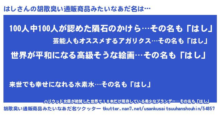 | 意味不明あだ名 | 『はしフォーエバー』『しいたけ科はし属』 |