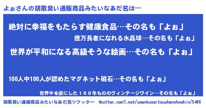 | ヘコむあだ名 | 『なまこ酢』『よぉ(小並感)』 |