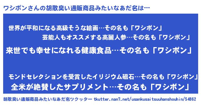 | ヘコむあだ名 | 『ワシボン(苦笑)』『なまこ酢』 |