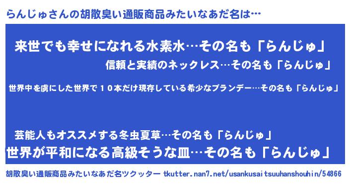| 意味不明あだ名 | 『住所不定無職らんじゅ(81歳)』 |
