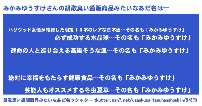 | 意味不明あだ名 | 『みかみゆうすけフォーエバー』 |
