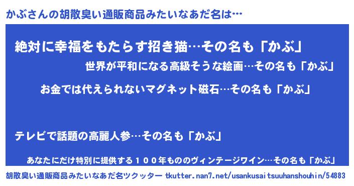 | ヒーロー風カッコイイあだ名 | 『愛の使者かぶ』『ネオカブ』 |