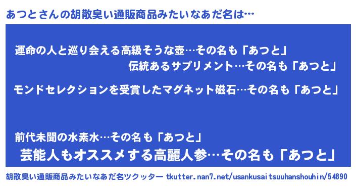 | 意味不明あだ名 | 『眠気覚ましガムあつと味』『自称あつと』 |