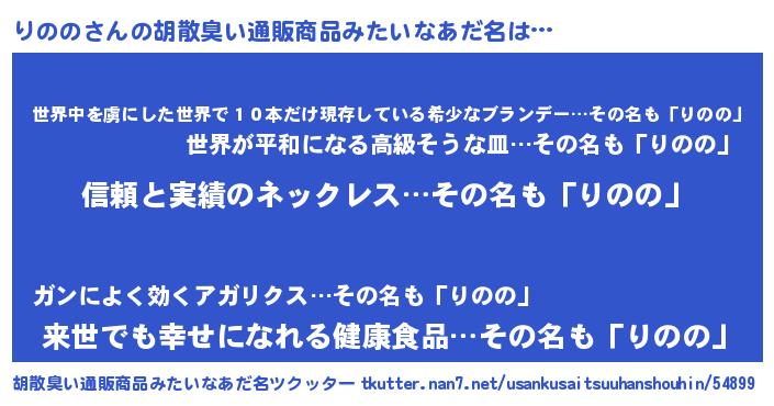 | 意味不明あだ名 | 『とにかく怪しいりのの』『自称りのの』 |