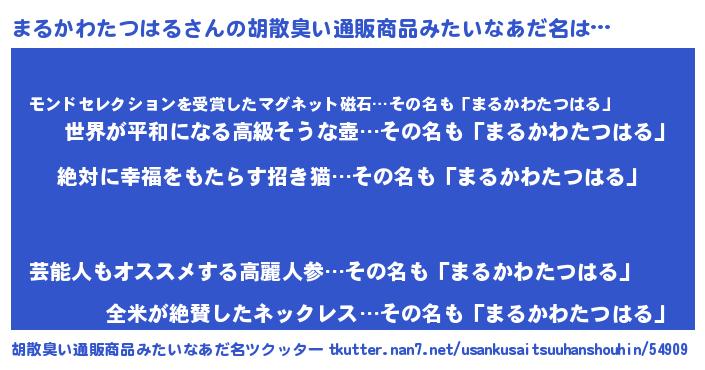 | 意味不明あだ名 | 『永久保存まるかわたつはる』 |