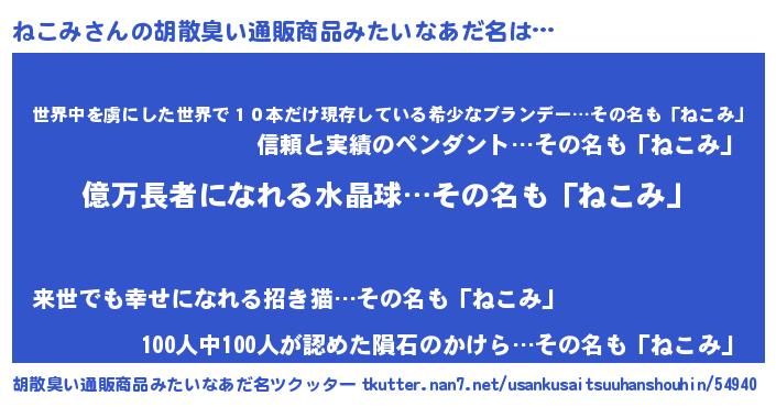 | ヒーロー風カッコイイあだ名 | 『スーパーネコミ』『仮面ネコダー』 |