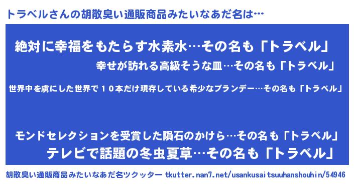 | 男性向けラノベタイトル風あだ名 | 『この素晴らしい世界にトラベルを!』 |
