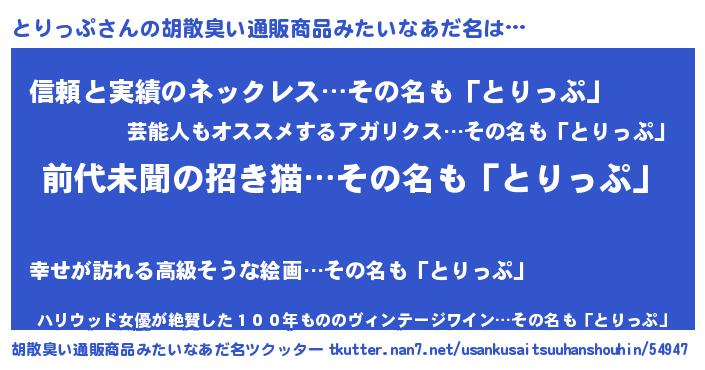 | 意味不明あだ名 | 『永久保存とりっぷ』『自称とりっぷ』 |